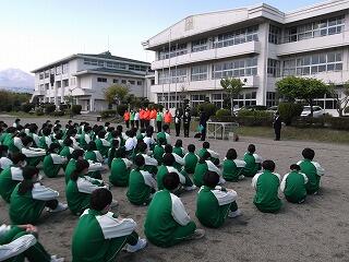この日は、育休から復帰した養護教諭の田村先生からあいさつがありました。