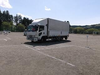 今年度はトラック協会の方のご協力で、巻き込みや飛び出しの実演がありました。