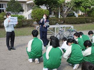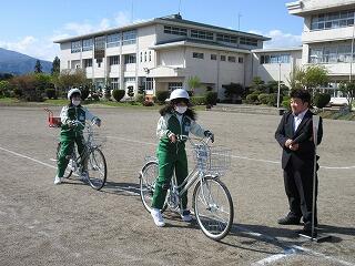 4月17日(金)、5時間目に行われた交通安全教室に引き続き、一年生の自転車教室が行われました。