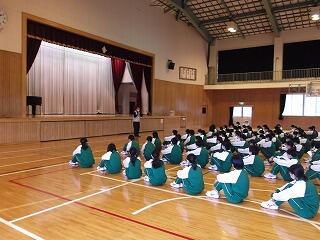 実演のあとは体育館に集合し、講師の方のお話を伺いました。