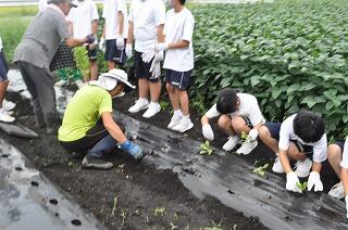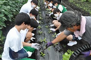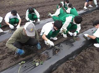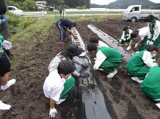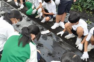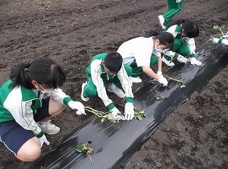 農園ボランティアの方のご協力で、さつまいもの苗の植え付けを行いました。