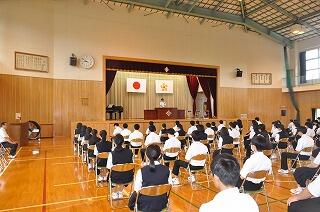 次に、始業式では、生徒代表の発表と校長先生からお話がありました。