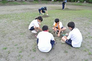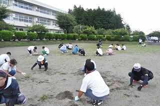 70名を超す生徒・保護者・教員が集まり、校庭の除草作業を行いました。