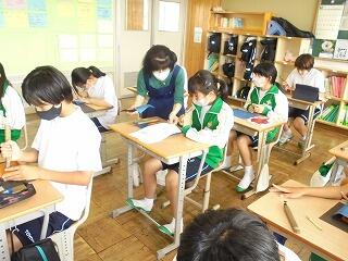 学校に講師の方をお招きし、各クラスで日光彫体験を行いました。