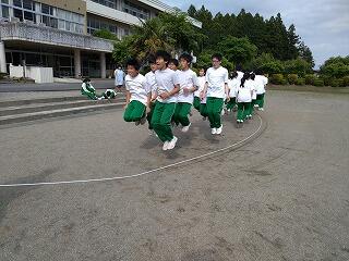12日(金)の運動会練習では、徒競走・アイディア走の入場を確認した後、各クラスごとの大縄跳び練習を行いました。