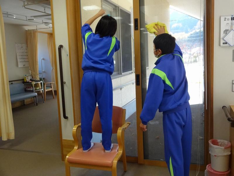 午前中は窓ふきや利用者の方々へお茶入れ、ドライヤーかけ等を体験させていただきました。