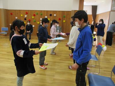 4・5年生が考えたゲームしたりや在校生で歌を歌ったりしました。