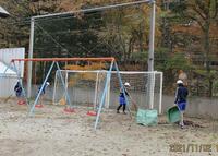 赤や黄色に色づいた葉を散らせ、山の木々が冬支度を始めました。学校の周りは落ち葉でいっぱいです。