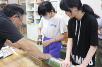 8/30(金)2・3校時、9/14(土)~平家の里前会場で行われる観光協会主催の催し「灯り導く」に出品する竹筒のワークショップを実施しました。講師の先生や観光協会の方々が5名来校し、丁寧に指導して下さったおかげで、立派な竹筒が完成しました。