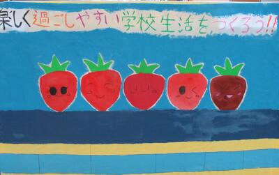 児童生徒が作った旗が完成しました。正面玄関に飾ってあります。スポーツフェスティバルでもお披露目します。