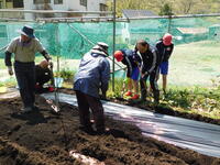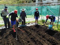 五月晴れの中、小学生が農園活動を行いました。