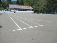 事前に体育科で校庭整備とライン挽きを行っている