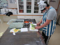 小学生は、調理実習です。