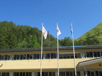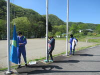 ると、当番制で国旗・市旗・校旗を掲げます。