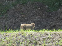 給食中に、駐車場の上に猿が4匹出没しました。