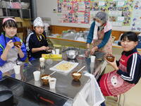 11/8(水)小学生は、放課後子ども教室で調理を行いました。今回は中学生1名も参加しました。この日のメニューは、「クッキー・ミルクティー・ニョッキ」です。クッキーを焼く香ばしい香りが廊下に漂ってきました。みんな笑顔でおいしいクッキーを焼き上げたようです。